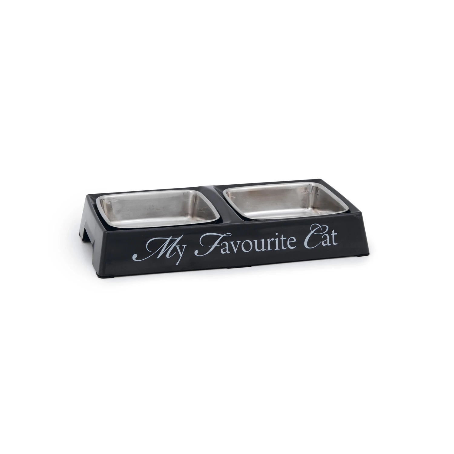 Met de Designed by Lotte My Favourite Cat Dinerset heb je het voer en water van jouw kat altijd dicht bij elkaar. Deze dinerset is gemaakt van melamine met daarin twee uitneembare RVS bakjes met een smalle rubberen rand, zodat geluid en schuiven tegen worden gegaan. De voerbak is gemakkelijk op te tillen door de handgrepen aan de zijkant en is volledig vaatwasserbestendig.
