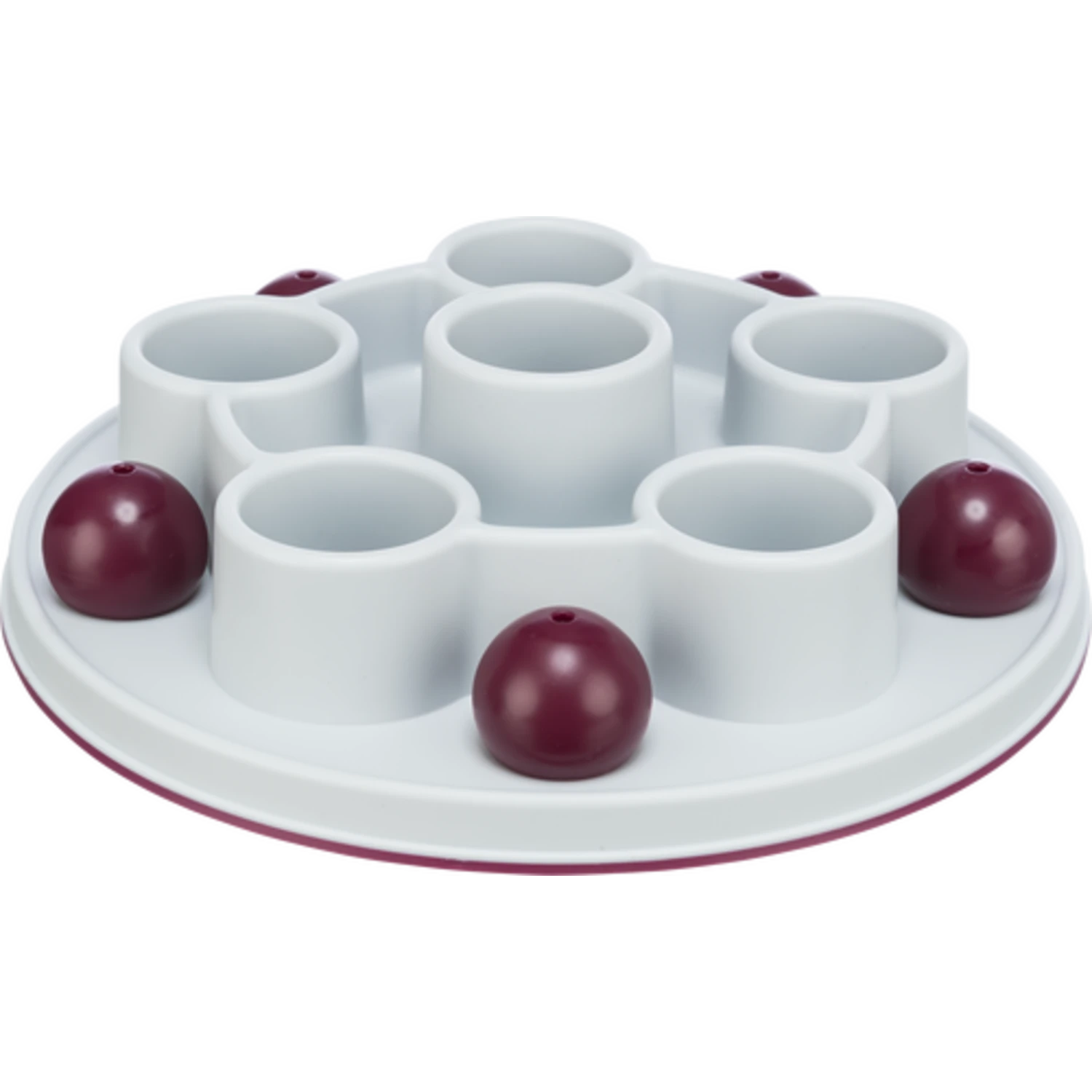 Voor katten is het belangrijk om veel te kunnen ondernemen en bezig gehouden te worden. Als jouw kat niet naar buiten zal jij jouw kat bezig moeten houden. Je kan jouw kat uitdagen met de Trixie Cat Activity Pentagon. De Pentagon is een denkspel voor katten. Stop wat lekkers zoals snoepjes of brokjes onder de balletjes en in de gaten. Met behulp van de pootjes en snuit moet jouw kat het lekkers te pakken zien te krijgen. Als het niet meteen lukt help je kat op weg om wel bij het lekkers te komen.